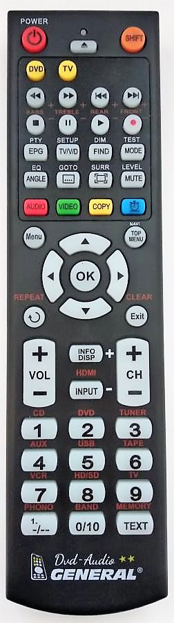 This remote control is available on branded remote control General DVD/AUDIO (seen on the left side). We guarantee the remote control will have exactly all the functions of the original RC.