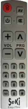 Universal simple remote control SEKI EASY PLUS silver for easy control of basic TV functions, SET BOX or satellite. This remote control is suitable especially for elderly or pensioners, children, hospitals, spa facilities, restaurants, hotels, etc. It is only possible to turn the TV on and off, switch between preset programs, control the volume. It also has buttons AV and MUTE, plus another button POWER / asterisk.