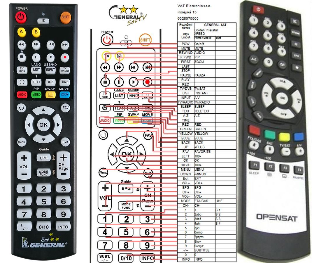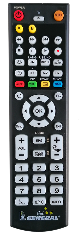 This remote control is available on branded remote control General SAT/TV (seen on the left side). We guarantee the remote control will have exactly all the functions of the original RC.