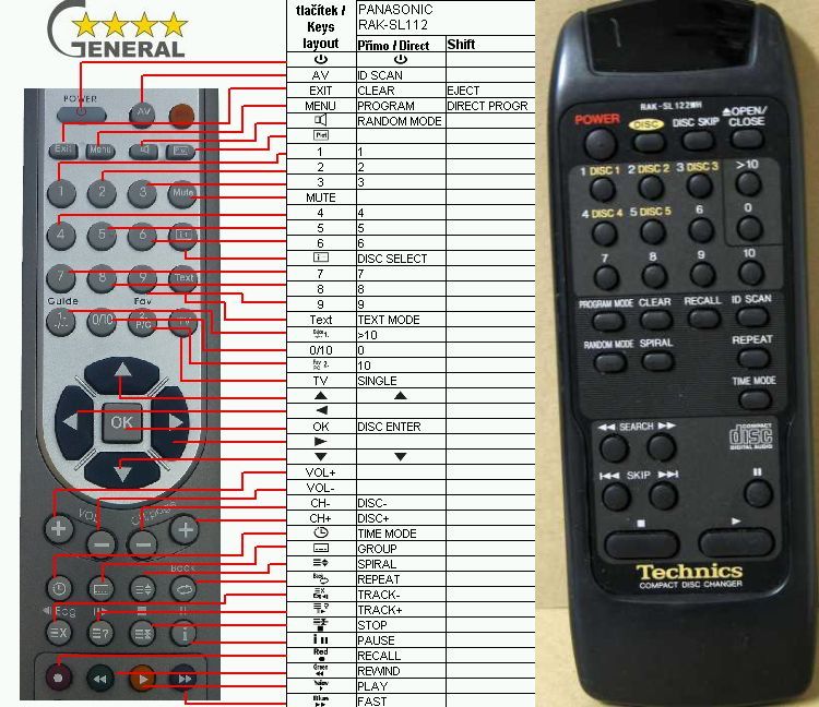 Instead of the original remote control TECHNICS RAK-SL112WH we supply quality replacement remote control GENERAL* of different appearance than the original remote control. Produced in the Czech Republic. Registered trademark GENERAL****.